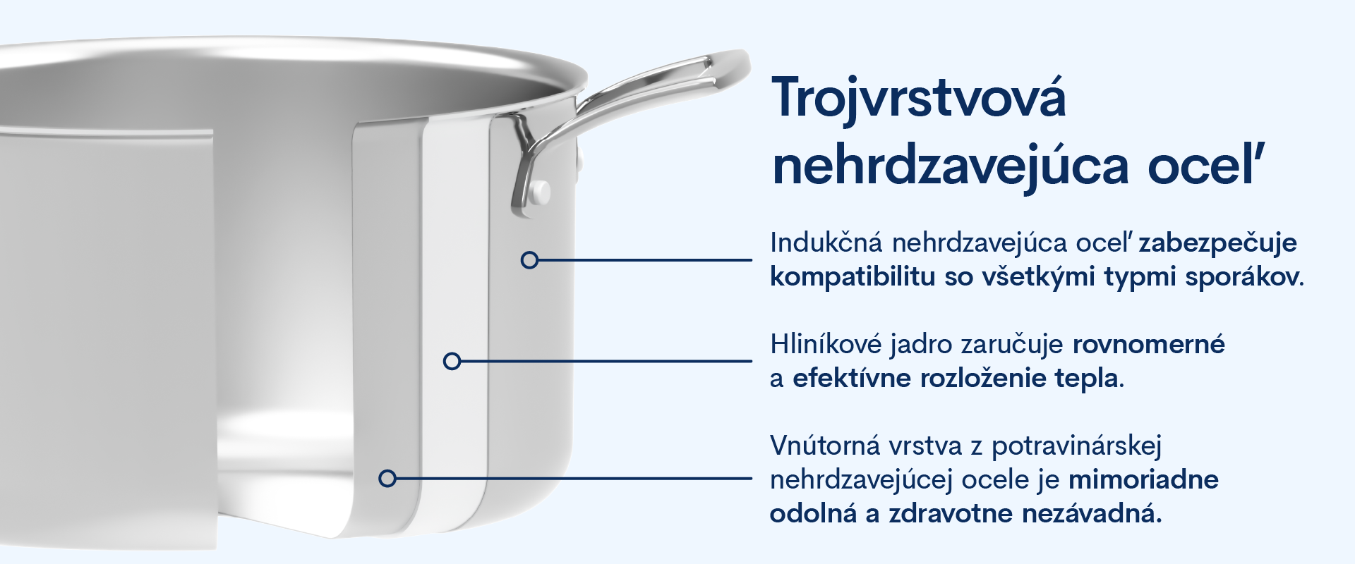 Panvica Remoska® Proxima má trojvrstvový nerezový povrch, je 100 % netoxická a úplne zdravotne nezávadná. Kombinuje tepelnú vodivosť hliníka a zároveň odolnosť nerezovej ocele. Vďaka dnu o hrúbke 2,5 mm si panvica udržuje stabilnú teplotu a bude tak rovnomerná, rýchla a bez pripálenia. Údržba je veľmi jednoduchá – po varení môžete riad ľahko umyť ručne alebo vložiť do umývačky. Nádobí je vhodné pre všetky typy sporákov, vrátane indukcie, a bez obáv ho môžete vložiť aj do rúry až do 220 °C.
