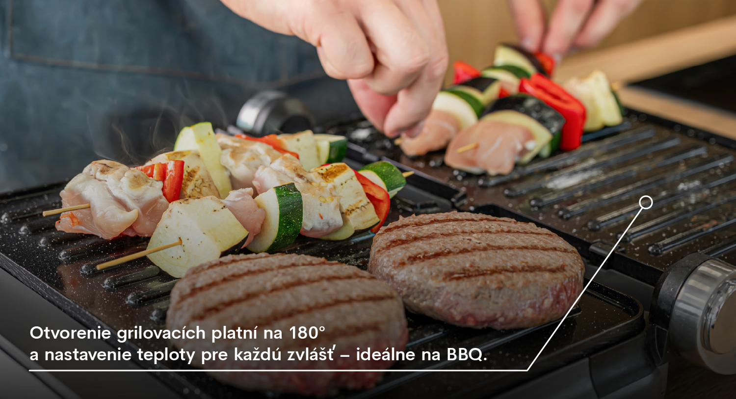 Pre väčšiu flexibilitu možno gril úplne otvoriť na 180° a využiť ho ako veľkú BBQ grilovaciu plochu. Zároveň môžete nastaviť teplotu oboch platní nezávisle od seba (90–230 °C), takže zvládne aj rôzne jedlá súčasne. Pre pohodlné a bezpečné používanie je gril vybavený časovačom s automatickým vypnutím a zvukovou signalizáciou po skončení prípravy. Kontaktný gril Remoska® Maria disponuje 5 nastaviteľnými polohami, takže ho môžete jednoducho prispôsobiť veľkosti pokrmu.