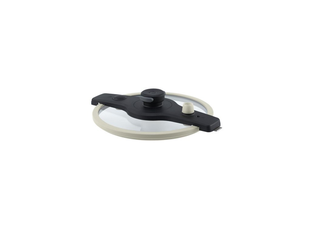 Soft-tlakové veko je vyrobené z tvrdeného bezpečnostného skla a po obvode je opatrené šedými silikónovými prvkami. Unikátny dizajn a patentovaný spôsob uchytenia vám umožní veko veľmi pohodlne uzavrieť aj pomocou jednej ruky. Pri použití veka získate hrniec, ktorý umožňuje rýchlu prípravu pokrmov pod miernym tlakom. Všetky pokrmy si zachovávajú dôležité vitamíny a minerály, čo robí zo soft-tlakového varenia veľmi zdravý a šetrný spôsob prípravy pokrmov. Veko je opatrené aj regulačným ventilom so silikónovým krytom a poistným ventilom pre bezpečné soft-tlakové dusenie.